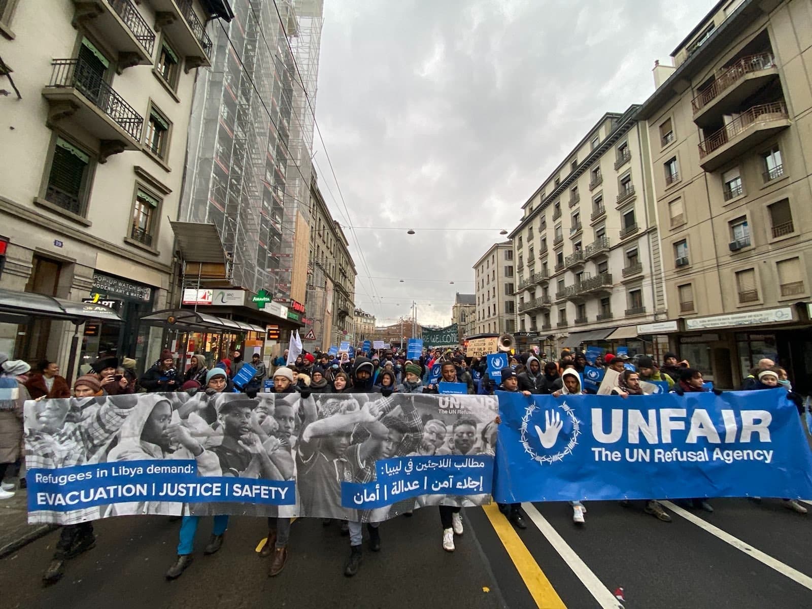 Charlie: The UNfair campaign started at the end of last year, and it specifically targets the UNHCR. It's basically a continuation of the protests and demands of Refugees in Libya, brought from Tripoli to Europe. We had two action days in Geneva, where the UNHCR head office is, on 9 and 10 December, International Human Rights Day.